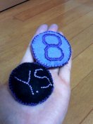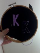 小物入れになるようなポシェットを春日部仕様で鋭利製作中です。本体に良い布が家に無かったので余りフェルトでマスコット二つ(写真左)と【K】マークを刺繍しました。マスコットには大好き柴航の背番号とイニシャル。Kマークはポシェットに使います。インテまでには間に合わせたいなぁ…