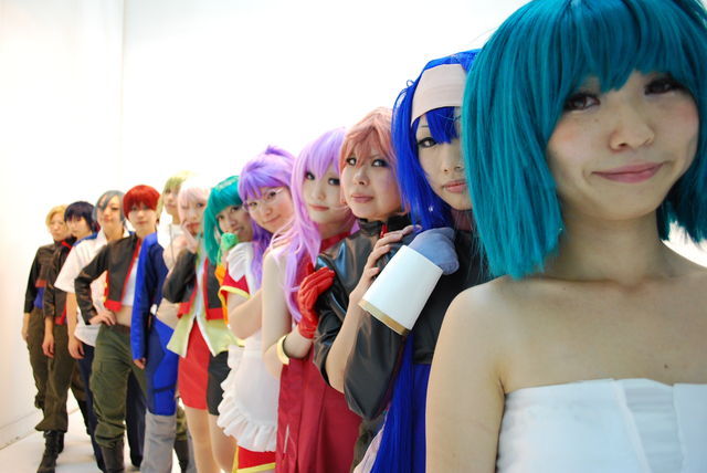 今日は地元みやこめっせでK匠と【おにゃのこの日】と題して、知り合いがいないのをいいことに普段はあんまやらない女装こっぷれします。アタシはやるけど、K匠の女の子コスは珍しいヨ。しかも…マクロフのシェリル!桐子作のシェリルを大好きなK匠に着てもらえる^^あ、桐子は緑のランカっぽいバジュラ・マリモです。衣装はライオンOPと私服の二着なり。