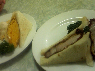 コ/ロナさんの肉厚タマゴサンドとカツサンド。