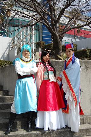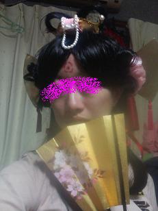 やっとの思いで京阪に着いたと思ったら「帯忘れたッ!」という大惨事。とりあえず白露ちゃんと巨匠にお詫びのメールを入れるという2008年初の大失態から始まりました。でも乗り換えも上手くいき、なんとか5分遅刻ですみました~今日はかなり混むなぁ、と思ってたので早めに入ったのですがコレがよかった。だってこの衣装、着るのに時間かかるんだもん。ウィッグとメイクだけで30分かかるんだもん。更衣室を出たときの会場の混みようにゾッとしましたよ
